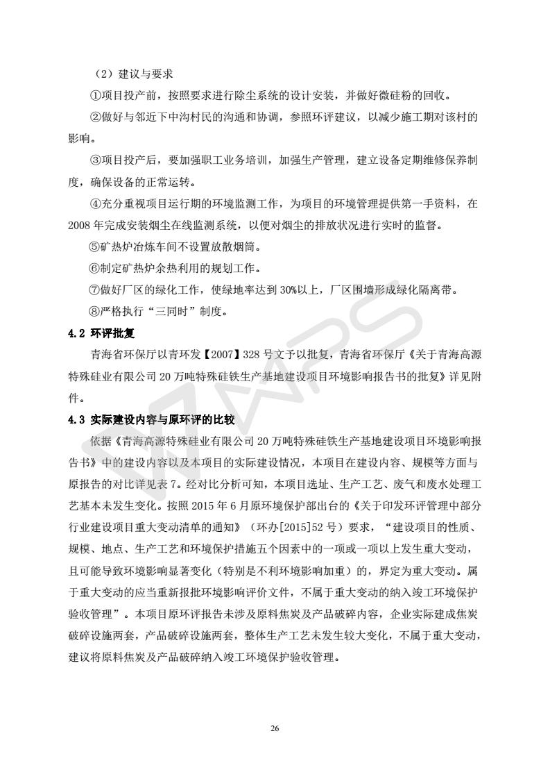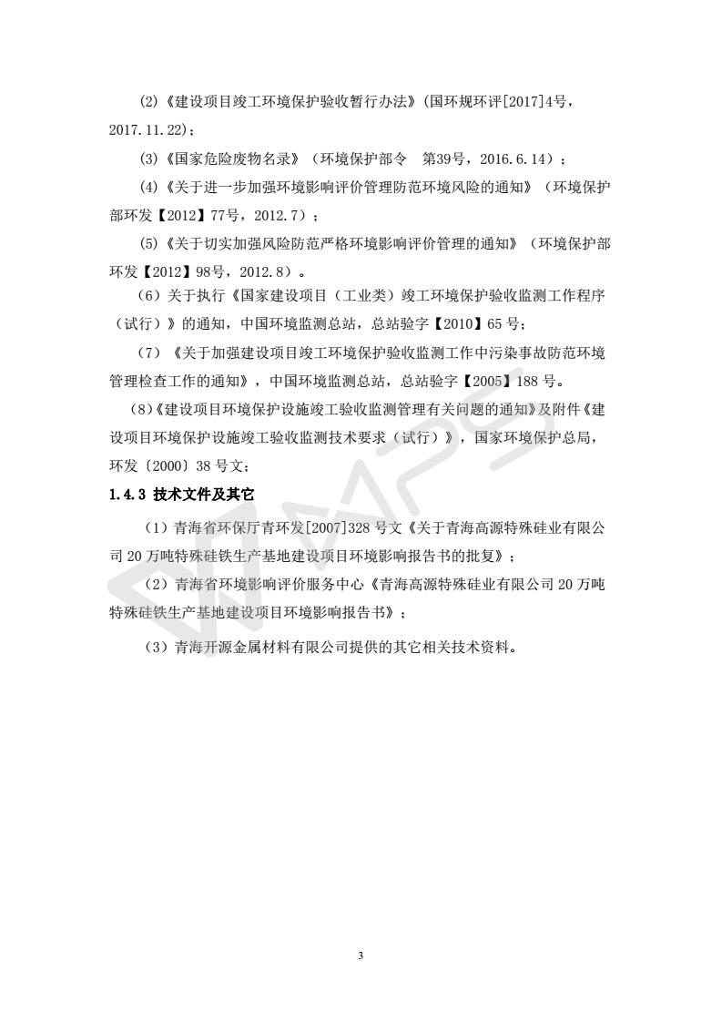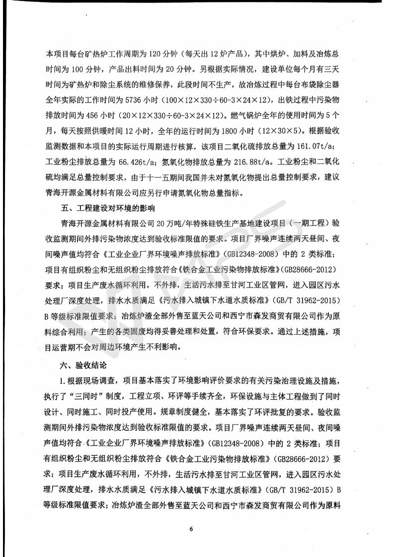 青海開源金屬材料有限公司20萬噸特殊硅鐵生產(chǎn)基地建設(shè)項(xiàng)目(一期工程)竣工環(huán)境保護(hù)驗(yàn)收報告書會后修改20180521