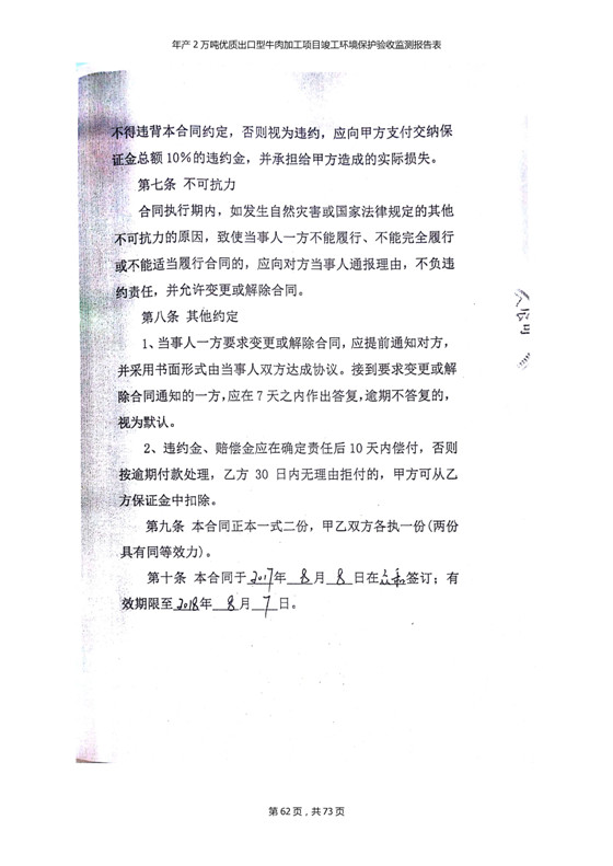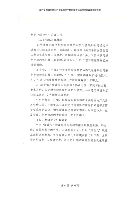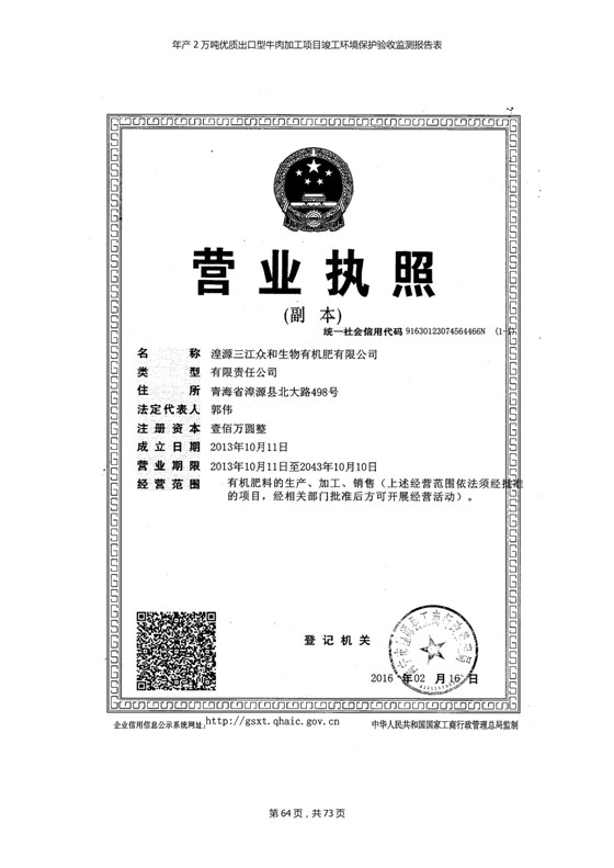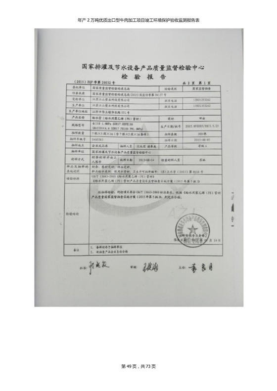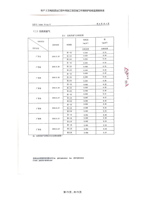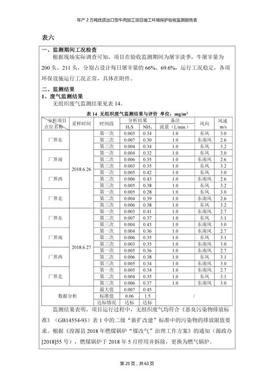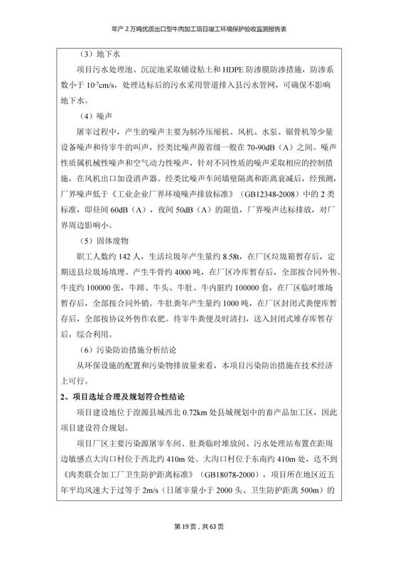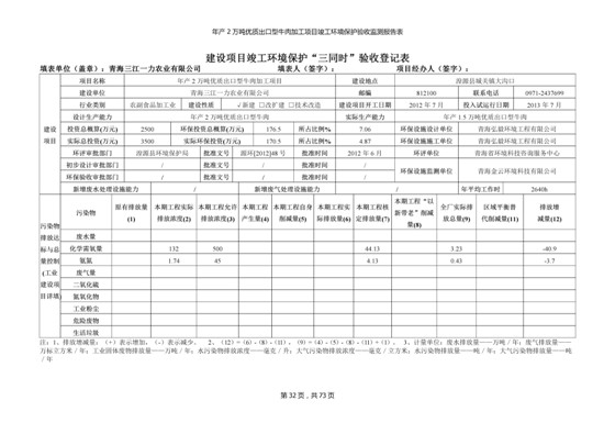 根據(jù)中華人民共和國國務(wù)院令第253號《建設(shè)項目環(huán)境保護(hù)管理條例》(中華人民共和國國務(wù)院令第682號《國務(wù)院關(guān)于修改〈建設(shè)項目環(huán)境保護(hù)管理條例〉的決定》和《建設(shè)項目竣工環(huán)境保護(hù)驗收暫行辦法》,嚴(yán)格依照有關(guān)法律法規(guī),建設(shè)項目環(huán)境保護(hù)設(shè)施驗收技術(shù)規(guī)范,本項目環(huán)評報告表和環(huán)保審批部門審批意見以及企業(yè)自行驗收相關(guān)要求等對本項目進(jìn)行驗收,本項目符合環(huán)保驗收條件,可以通過環(huán)保驗收。 青海三江一力農(nóng)業(yè)有限公司組織召開年產(chǎn)2萬噸優(yōu)質(zhì)出口型牛肉加工項目(一期工程)驗收組意見.