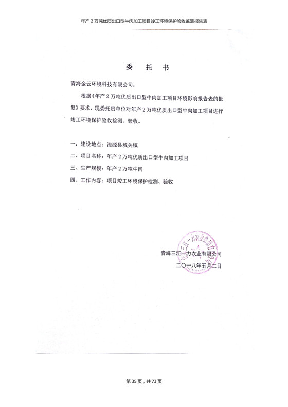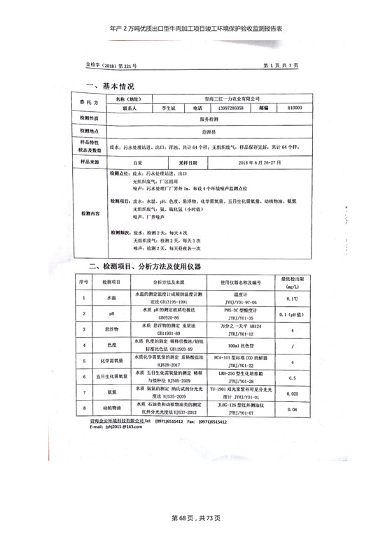 2018年7月11日,青海三江一力農(nóng)業(yè)有限公司組織召開年產(chǎn)2萬噸優(yōu)質(zhì)出口型牛肉加工項目竣工環(huán)境保護(hù)驗收會。