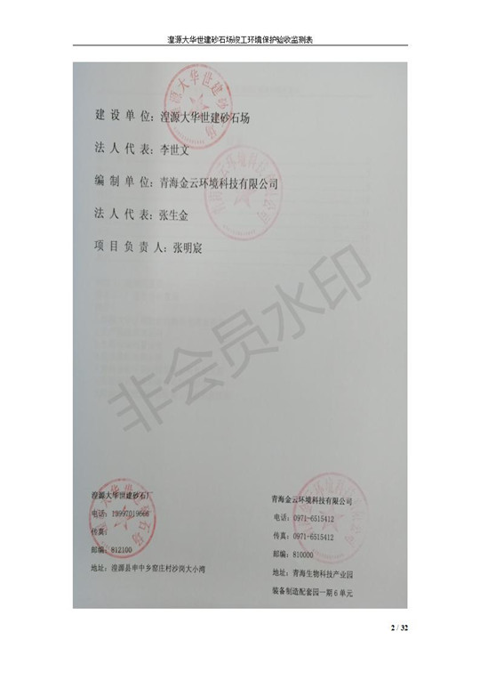 湟源大華世建砂石場建設項目竣工環(huán)境保護驗收發(fā)布日期:(2018-9-6) 點擊次數(shù):2371 |