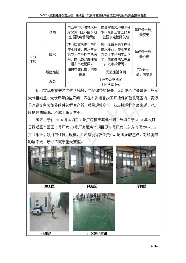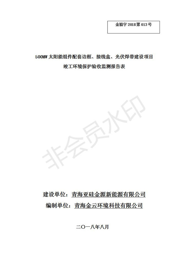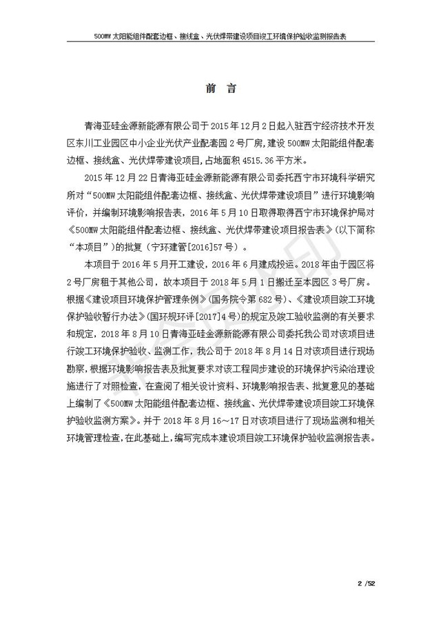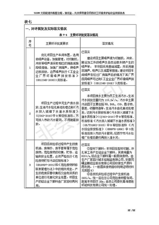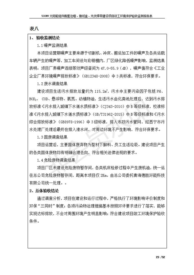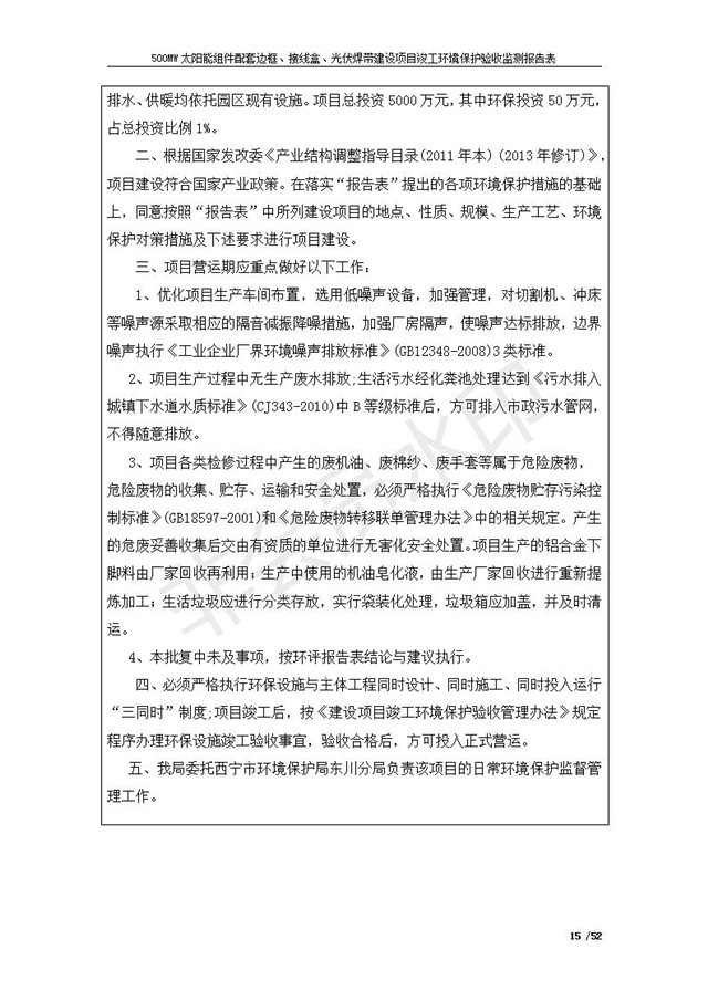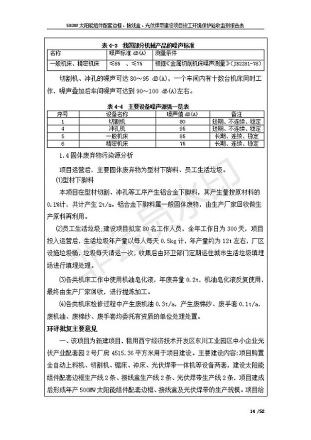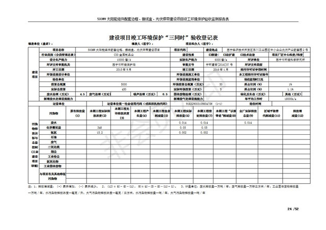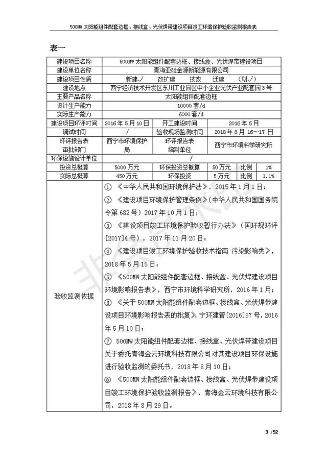 500MW太陽(yáng)能組件配套邊框、接線盒、光伏焊帶建設(shè)項(xiàng)目竣工環(huán)境保護(hù)驗(yàn)收監(jiān)測(cè)報(bào)告表公示