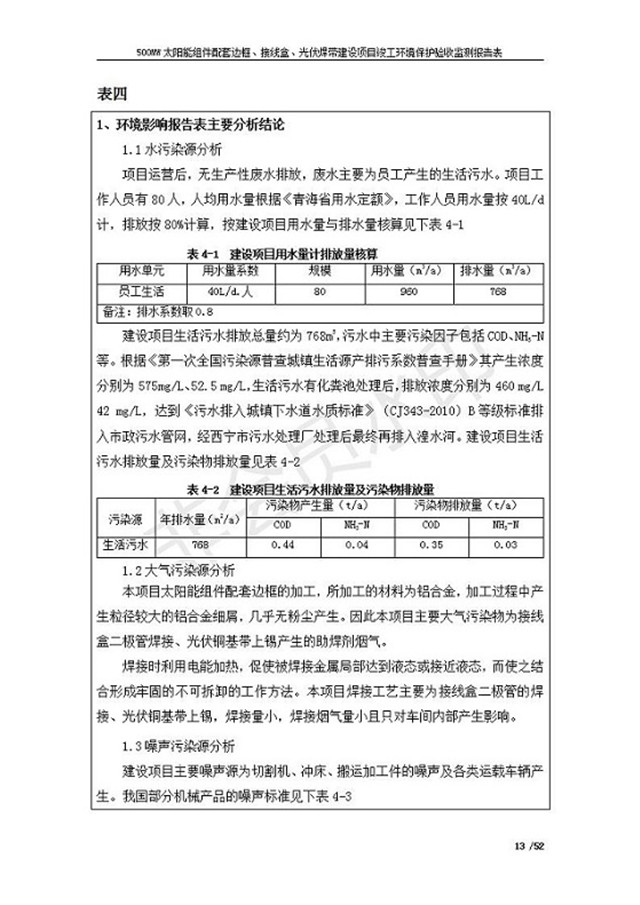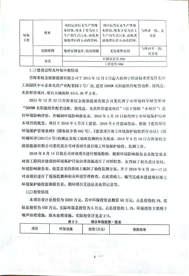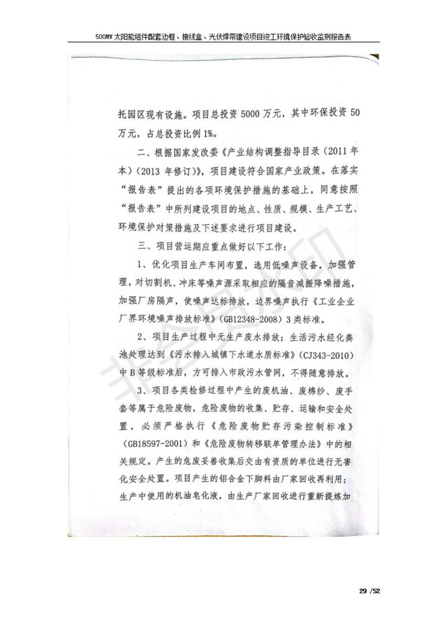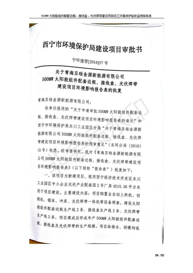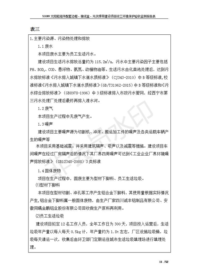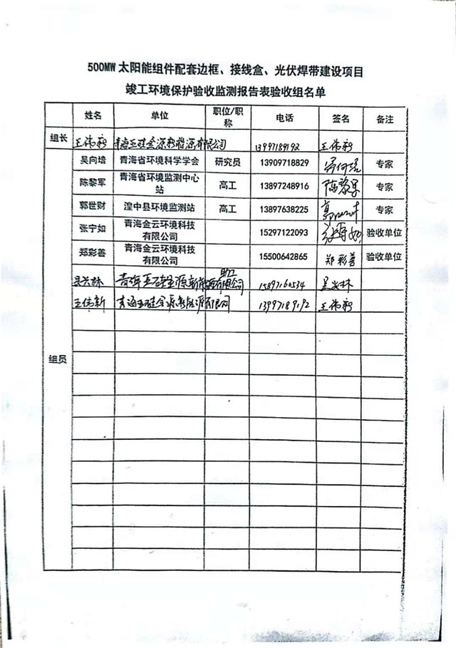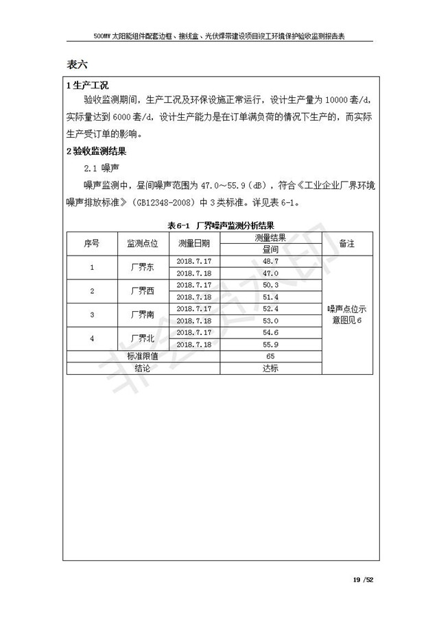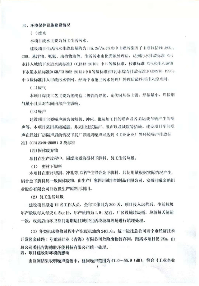 500MW太陽(yáng)能組件配套邊框、接線盒、光伏焊帶建設(shè)項(xiàng)目竣工環(huán)境保護(hù)驗(yàn)收監(jiān)測(cè)報(bào)告表公示