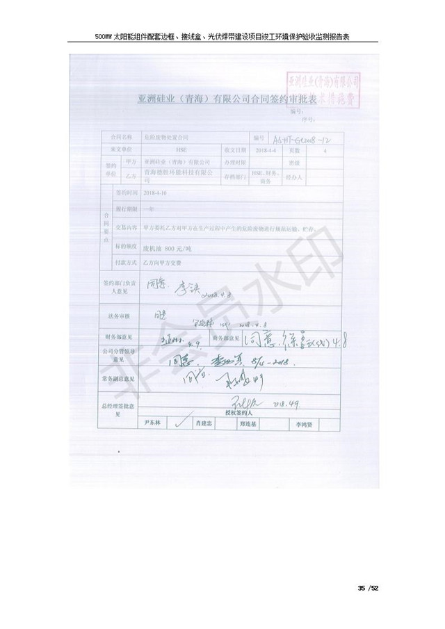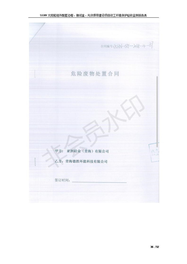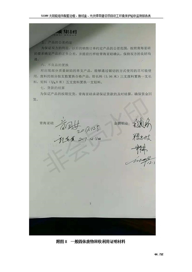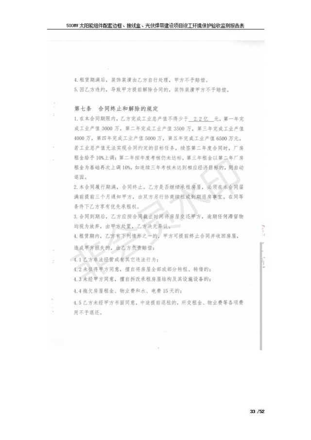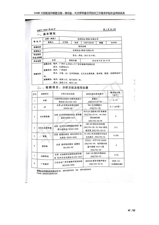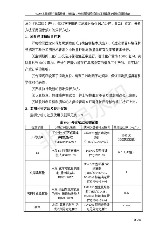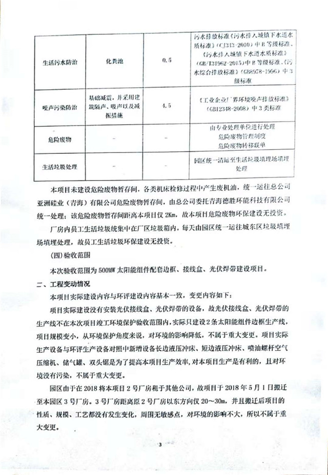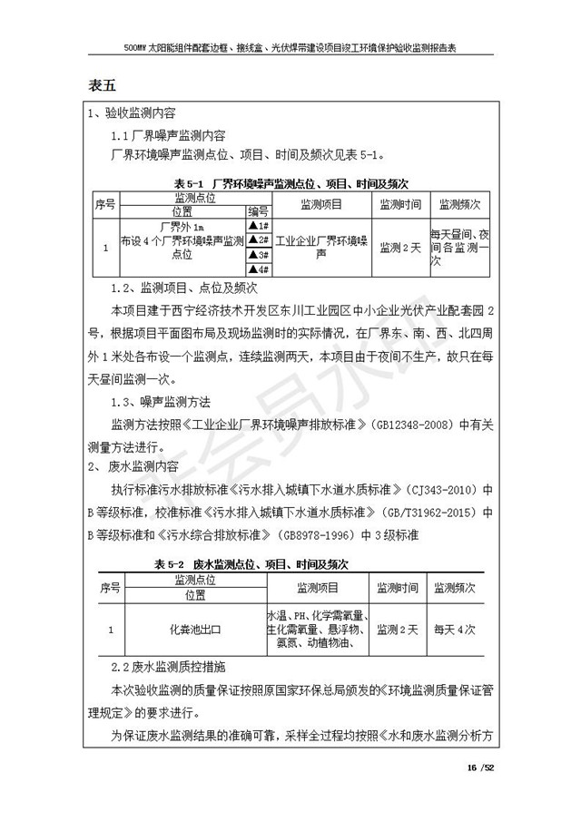 500MW太陽(yáng)能組件配套邊框、接線盒、光伏焊帶建設(shè)項(xiàng)目竣工環(huán)境保護(hù)驗(yàn)收監(jiān)測(cè)報(bào)告表公示