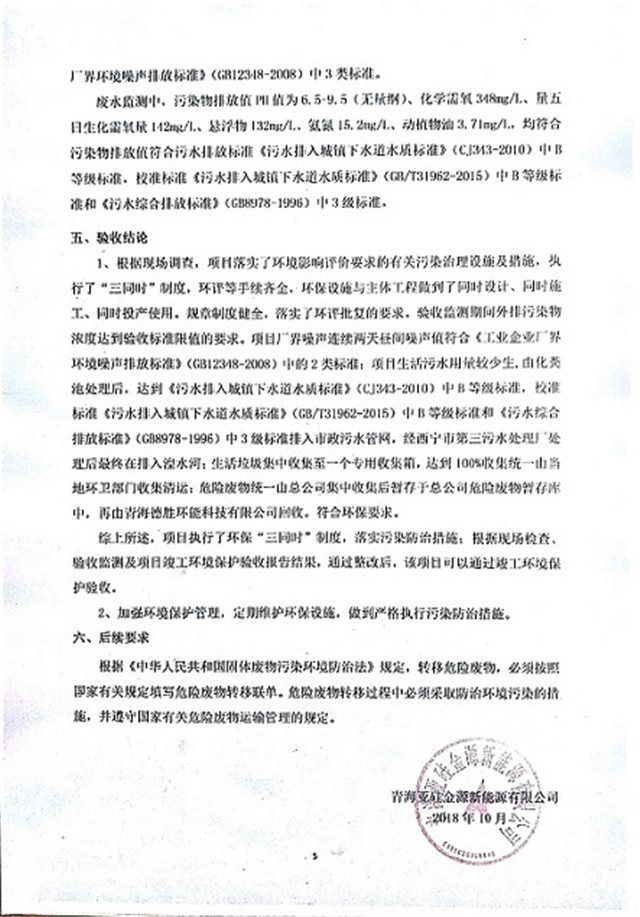 根據(jù)中華人民共和國(guó)國(guó)務(wù)院令第253號(hào)《建設(shè)項(xiàng)目環(huán)境保護(hù)管理?xiàng)l例》(中華人民共和國(guó)國(guó)務(wù)院令第682號(hào)《國(guó)務(wù)院關(guān)于修改〈建設(shè)項(xiàng)目環(huán)境保護(hù)管理?xiàng)l例〉的決定》和《建設(shè)項(xiàng)目竣工環(huán)境保護(hù)驗(yàn)收暫行辦法》,嚴(yán)格依照有關(guān)法律法規(guī),建設(shè)項(xiàng)目環(huán)境保護(hù)設(shè)施驗(yàn)收技術(shù)規(guī)范,本項(xiàng)目環(huán)評(píng)報(bào)告表和環(huán)保審批部門(mén)審批意見(jiàn)以及企業(yè)自行驗(yàn)收相關(guān)要求等對(duì)本項(xiàng)目進(jìn)行驗(yàn)收,本項(xiàng)目符合環(huán)保驗(yàn)收條件,可以通過(guò)環(huán)保驗(yàn)收。 現(xiàn)將本項(xiàng)目竣工環(huán)境保護(hù)驗(yàn)收情況進(jìn)行公開(kāi),并征求公眾意見(jiàn)。一、征求意見(jiàn)日期:自公示之日起20個(gè)工作日 二、征求意見(jiàn)期間,驗(yàn)收組接受反映公示的建設(shè)項(xiàng)目竣工環(huán)境保護(hù)驗(yàn)收情況和問(wèn)題的來(lái)信、來(lái)訪和來(lái)電。 三、聯(lián)系方式 聯(lián)系人:張工 電 話:15297122093 通訊地址:青海省西寧市城北區(qū)經(jīng)四路創(chuàng)新創(chuàng)業(yè)大廈22號(hào)