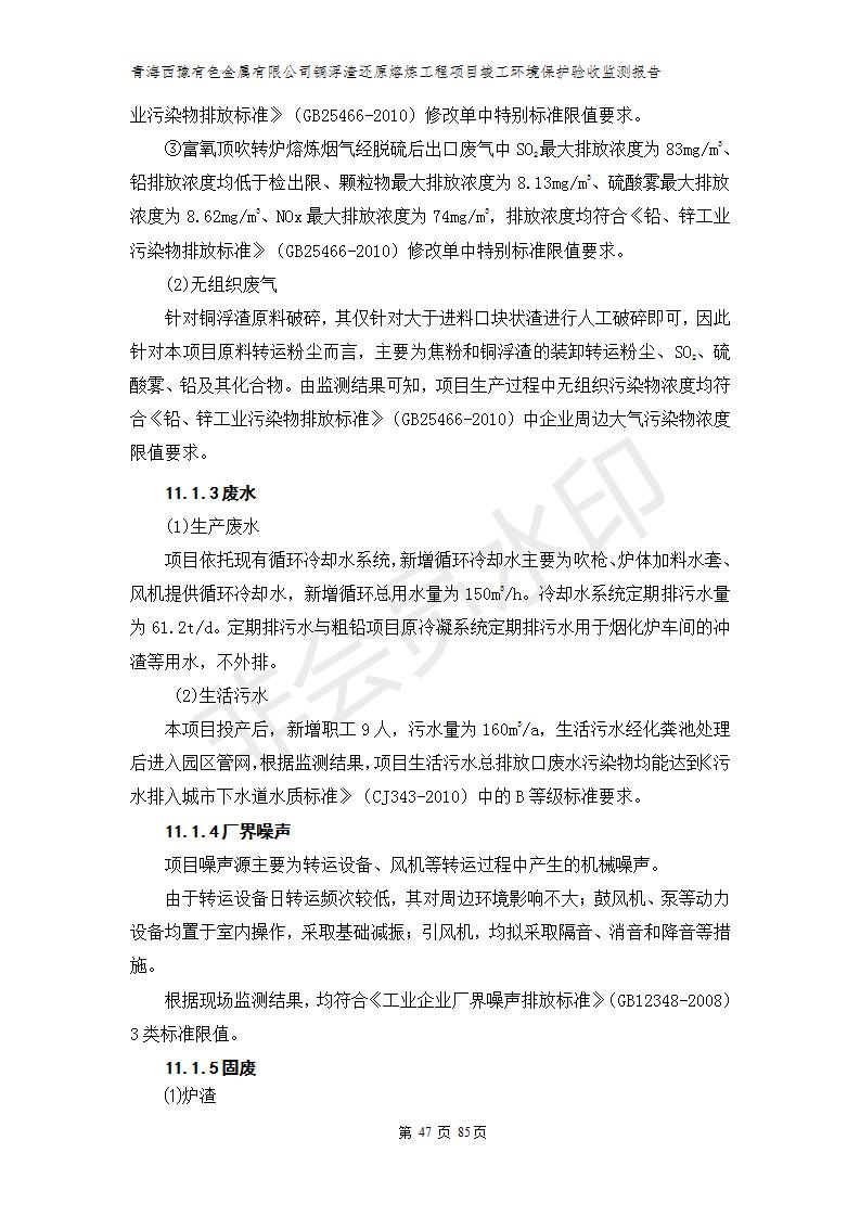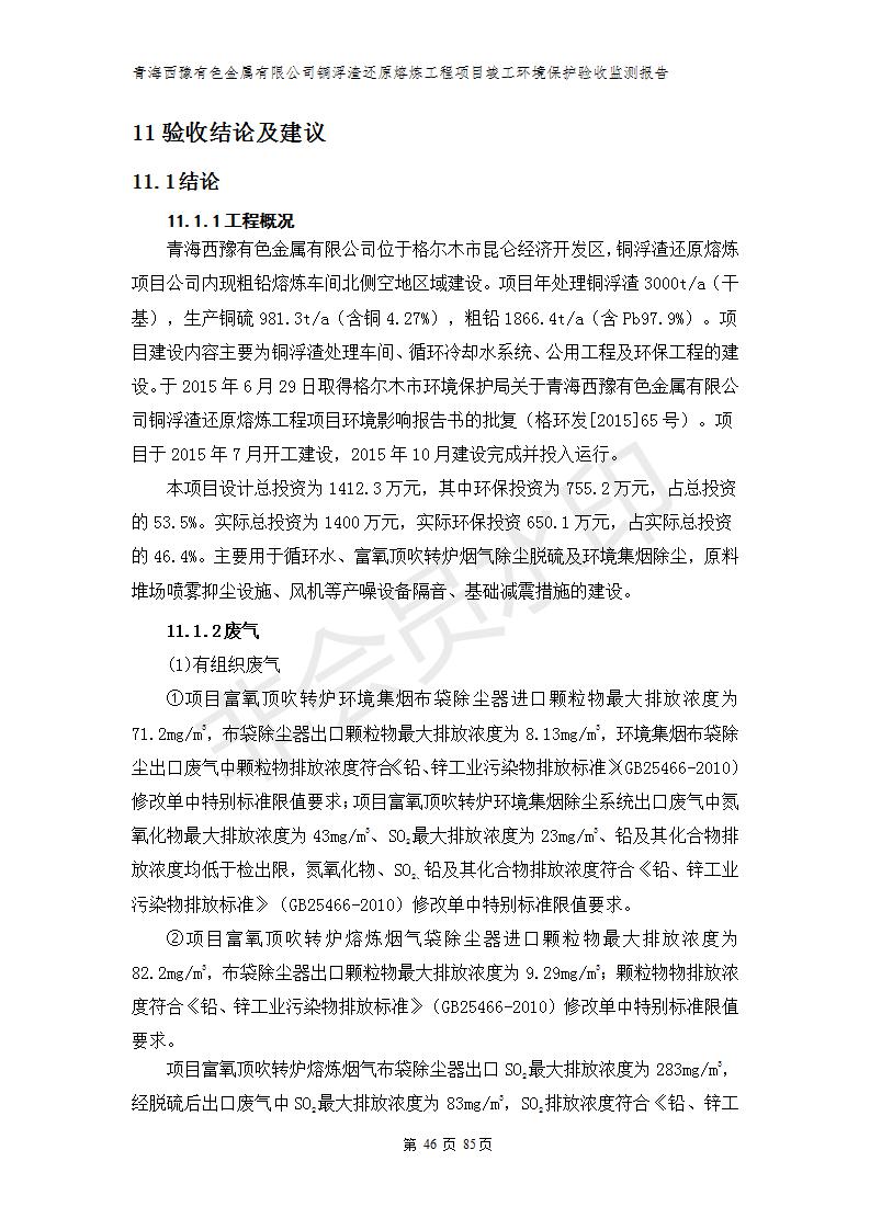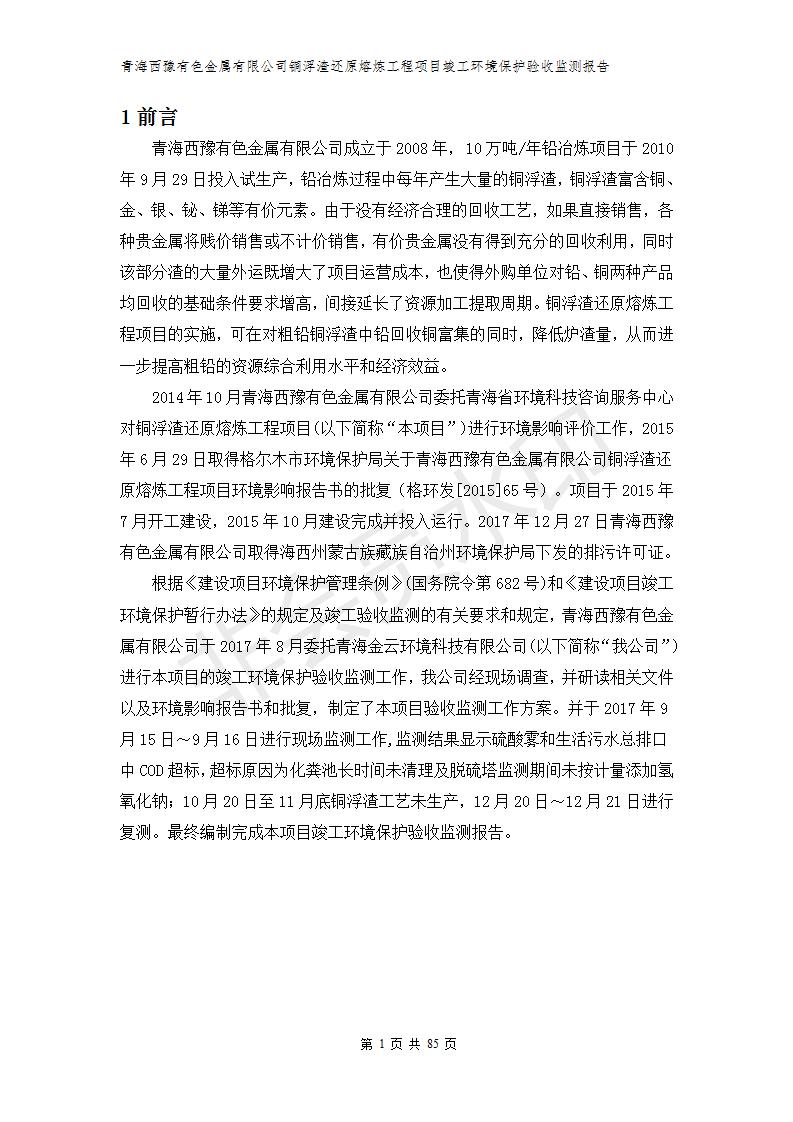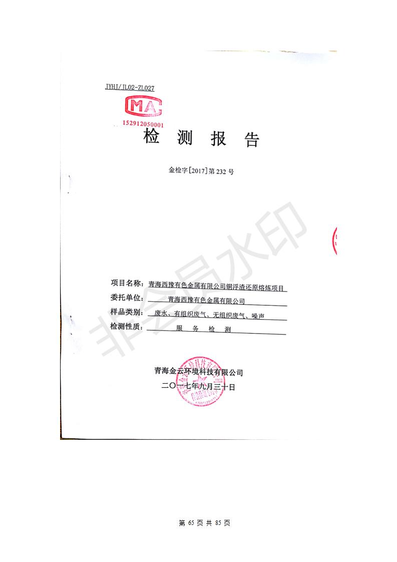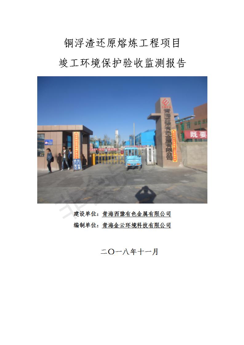 青海西豫有色金屬有限公司銅浮渣還原熔煉工程項(xiàng)目竣工環(huán)境保護(hù)驗(yàn)收監(jiān)測(cè)報(bào)告公示發(fā)布日期:(2018-11-23) 點(diǎn)擊次數(shù):2702 |