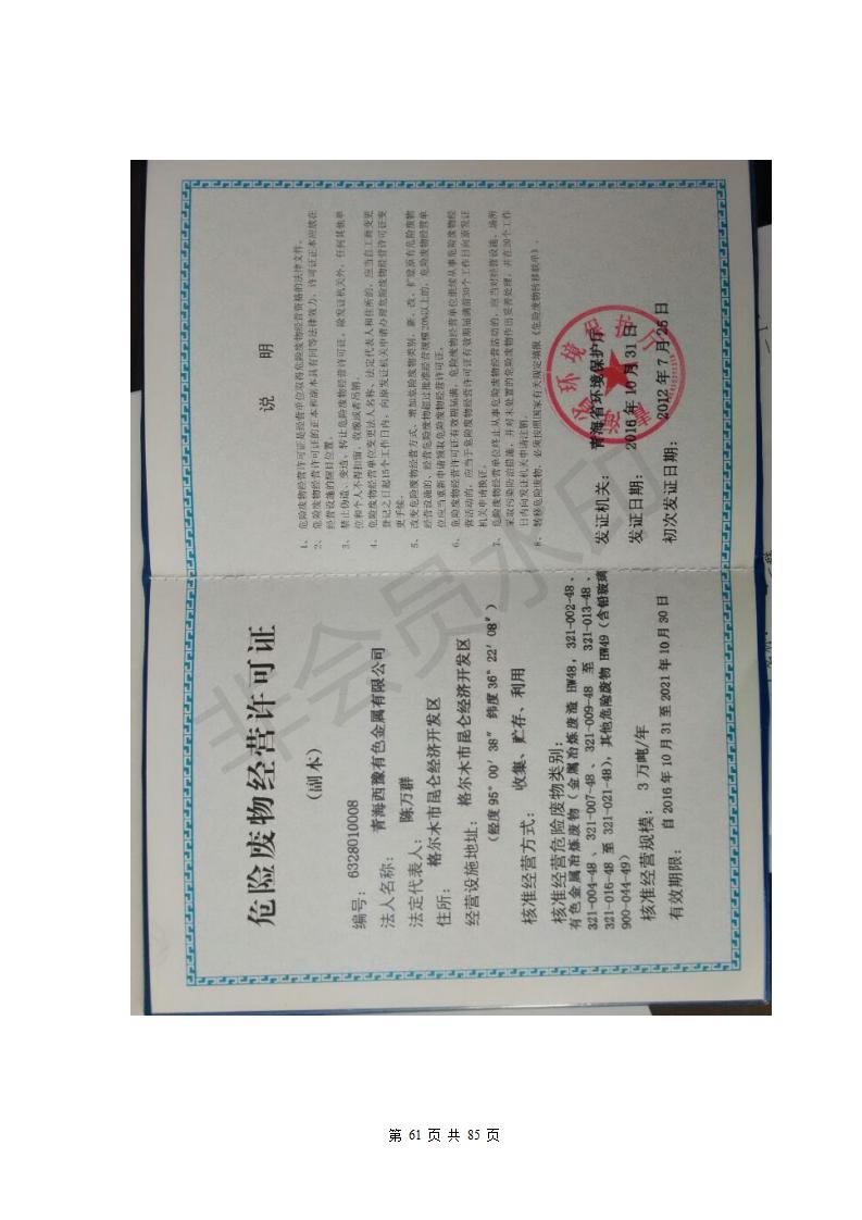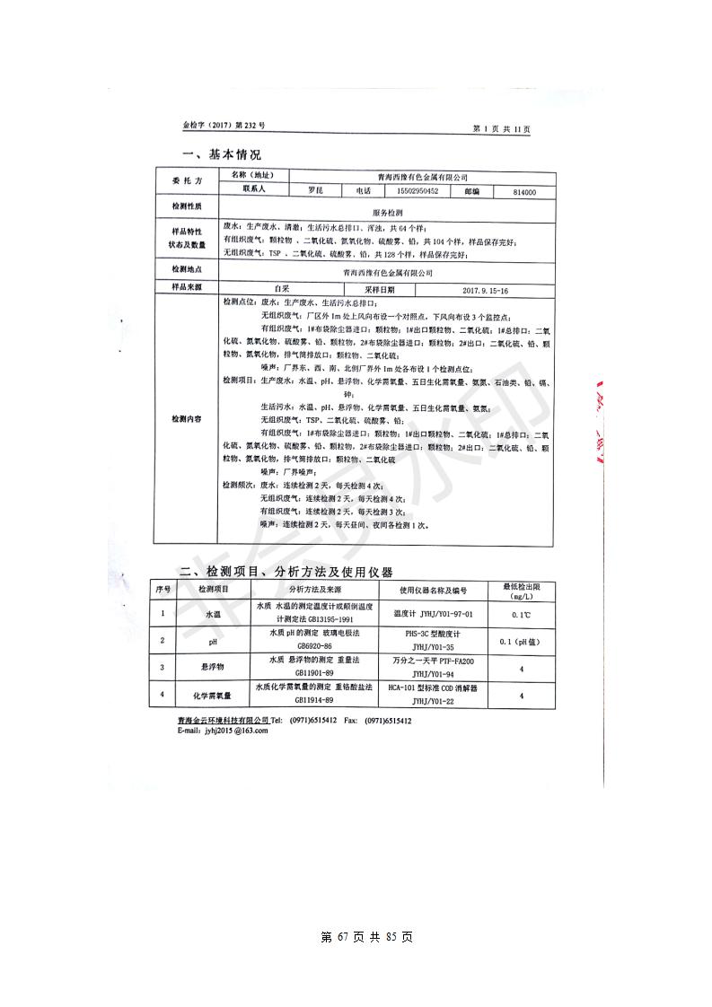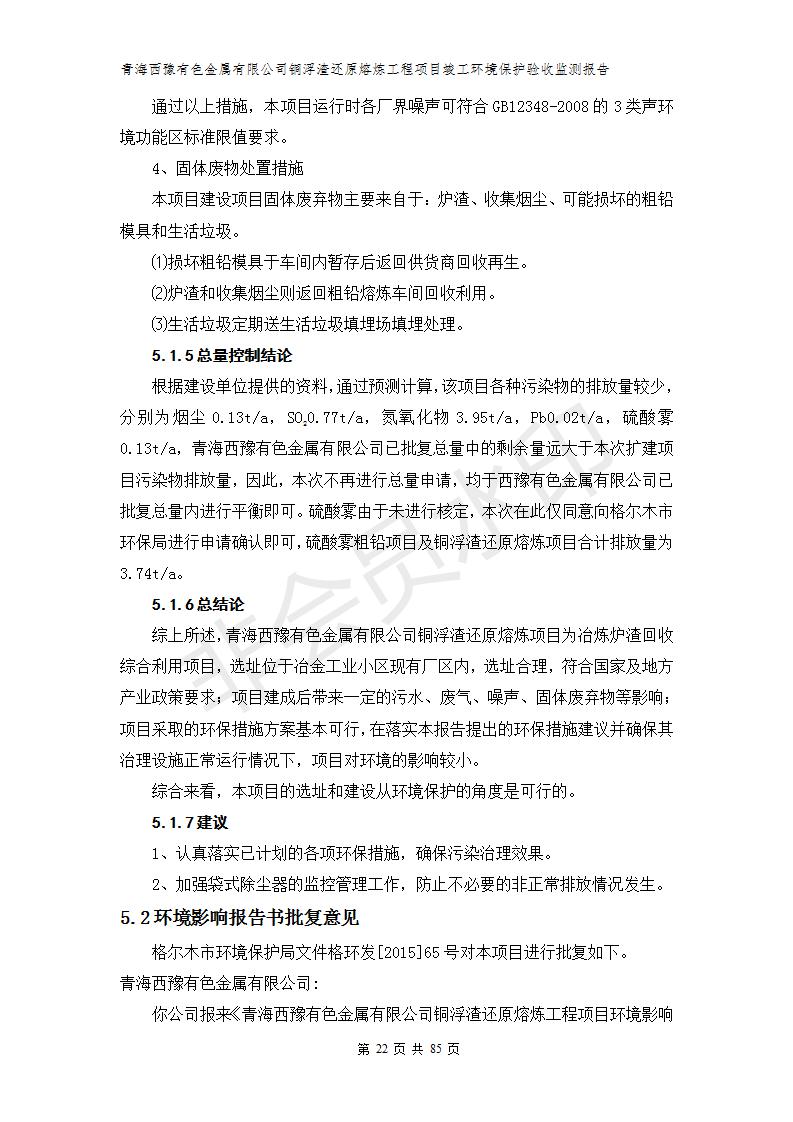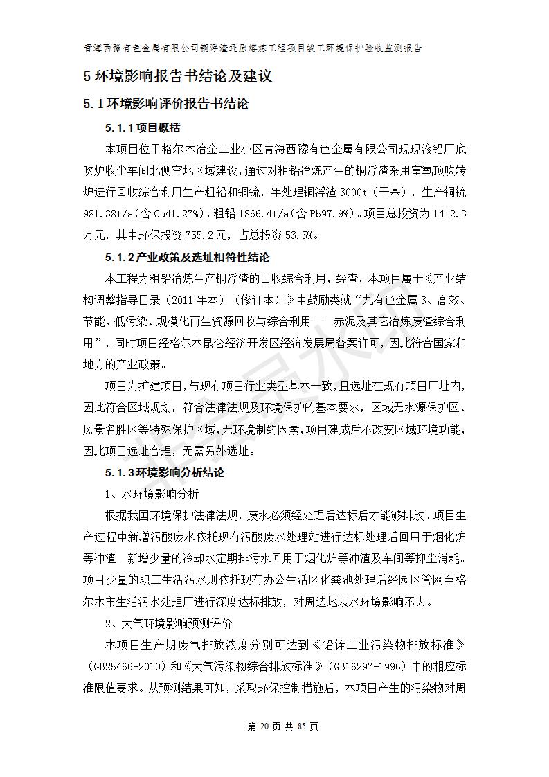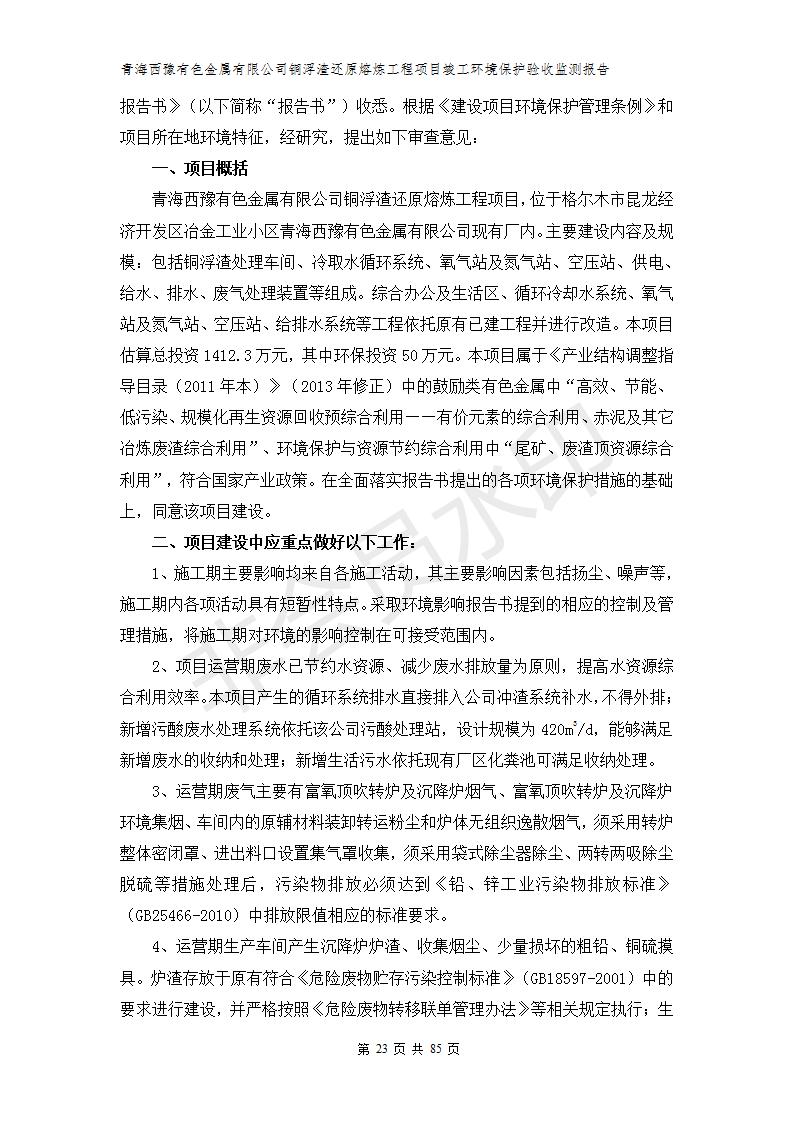 青海西豫有色金屬有限公司銅浮渣還原熔煉工程項(xiàng)目竣工環(huán)境保護(hù)驗(yàn)收監(jiān)測(cè)報(bào)告公示發(fā)布日期:(2018-11-23) 點(diǎn)擊次數(shù):2702 |